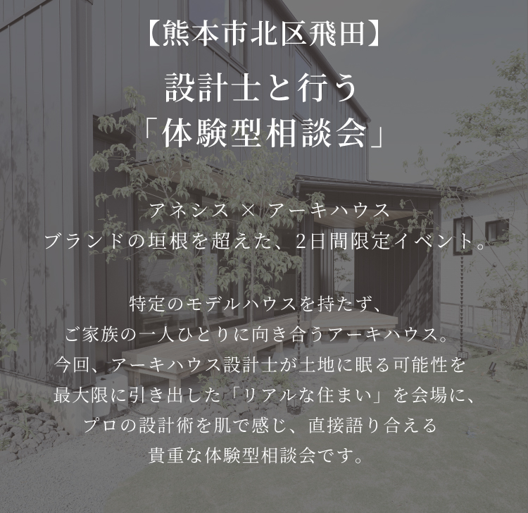 【2日間限定】アーキハウス設計士が手掛けたモデルハウスをリアルに体感 設計士と行う「体験型相談会」