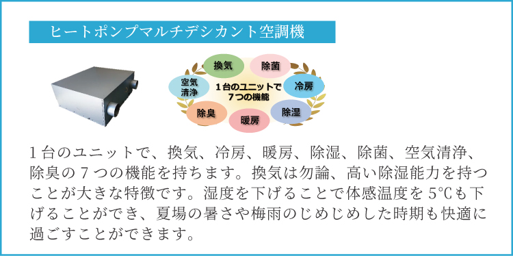 平川: 第一種換気ということは、機械で計画的に換気を行うシステムですね。この「デシカント空調」にはどんな特徴があるのでしょうか?
