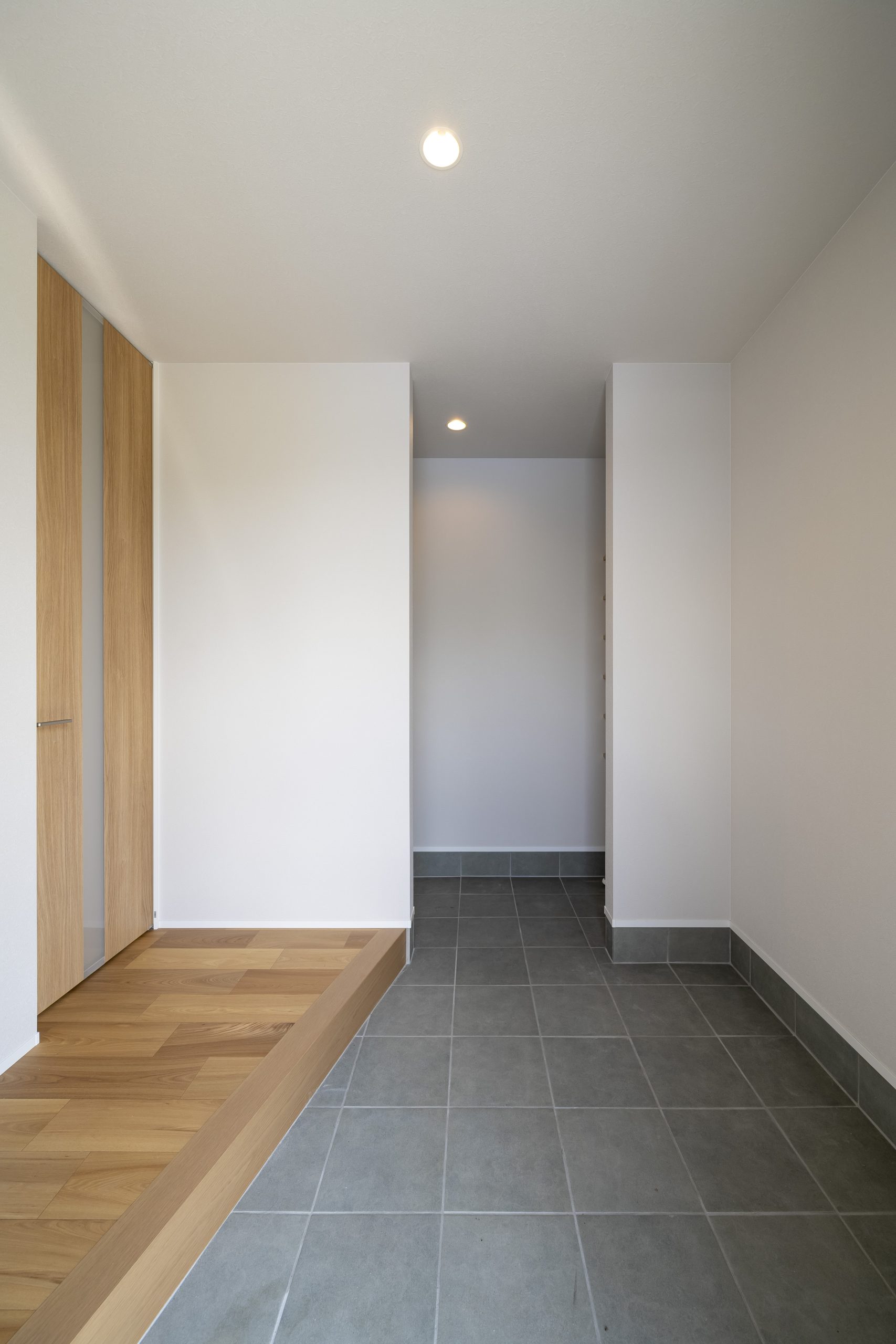 蓑田さん: それは、視覚的な「圧迫感」を1つずつ丁寧に取り除いているからです。例えば、玄関は靴を脱ぎ履きする間口を1cmでも広く確保するために、あえて土間とホールを「斜め」に仕切っています。