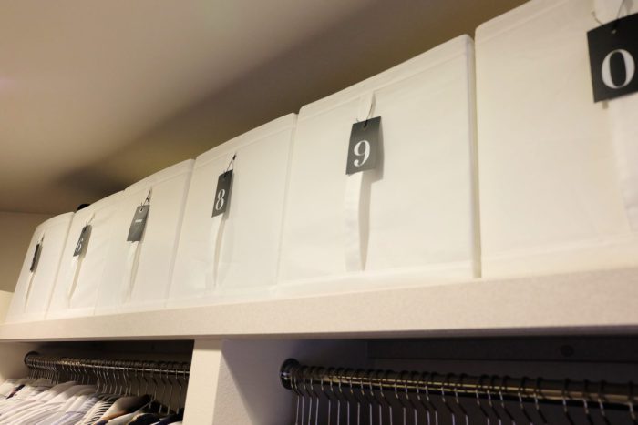我が家のウォークインクローゼットでも、中身が見えない収納グッズが大活躍しています。