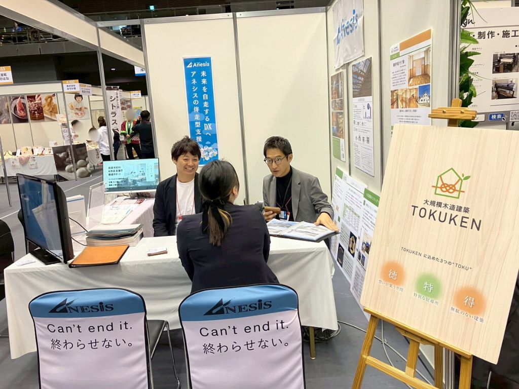 当日は、弊社の大型木造建築事業「TOKUKEN」および、企業のDX化を支援する「DX戦略部」がブースを出展。