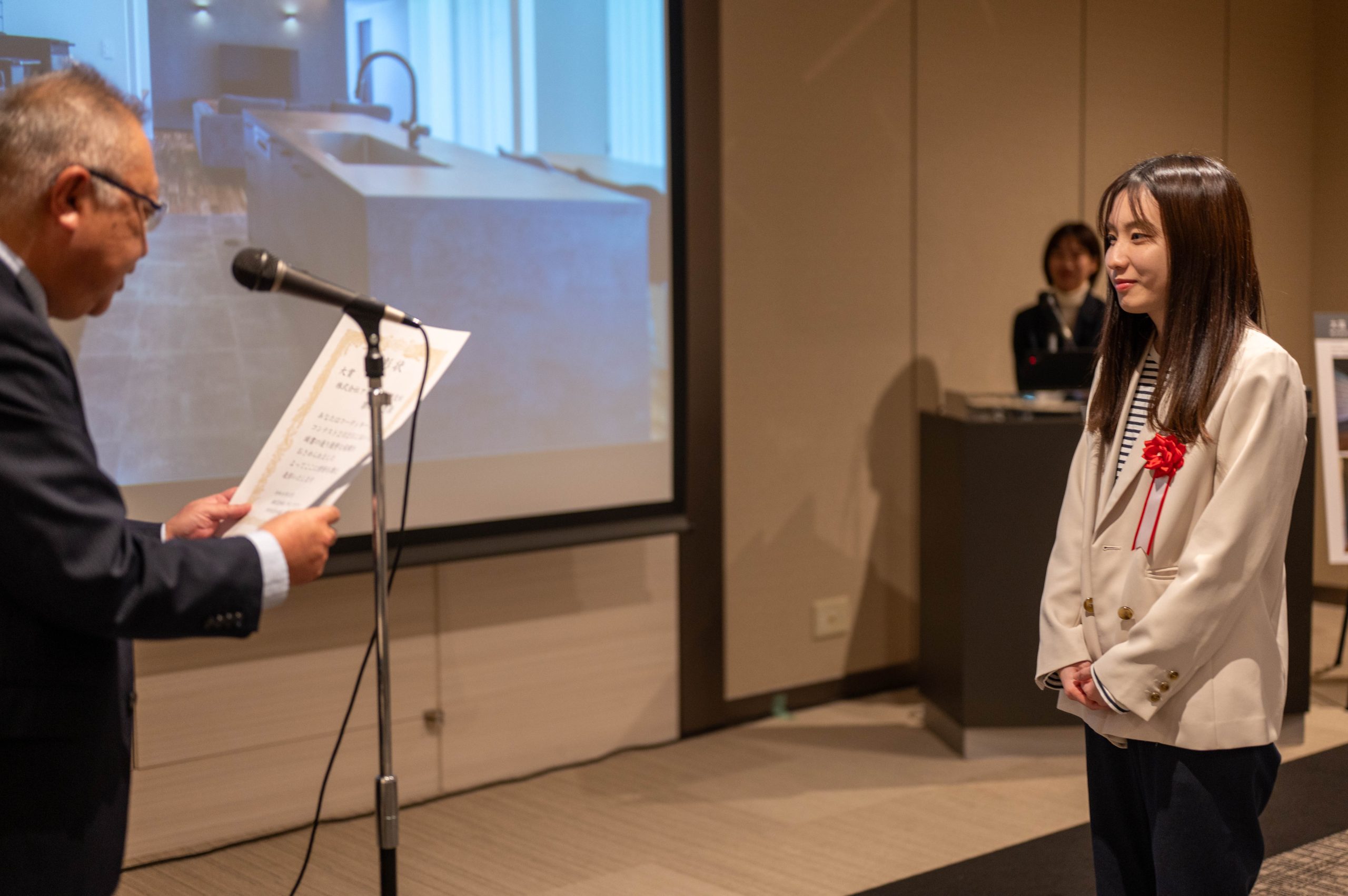 授賞式には、受賞した物件の担当設計士 築地 佐恵(アネシス福岡)が出席しました。
