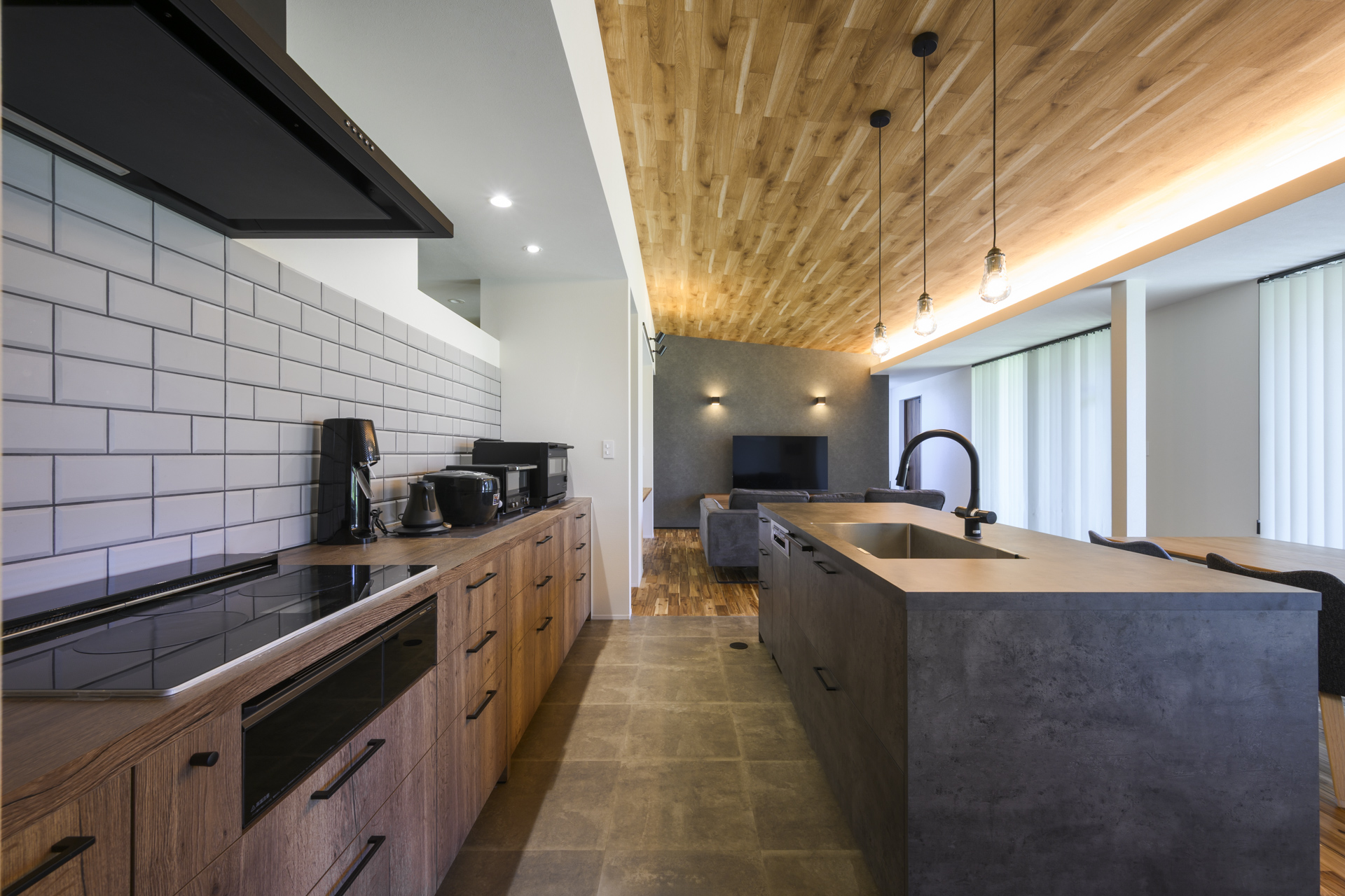 温かみのある木目とモダンな石目が美しく調和したLDK。