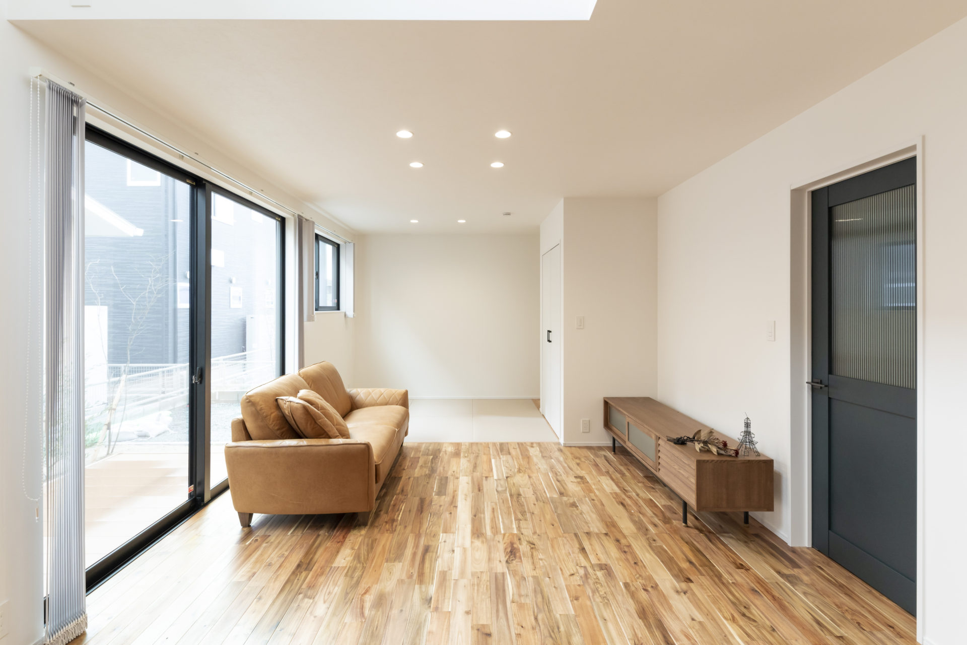 リビング横に設けたタタミスペースは子どものお昼寝や家族でくつろぐスペースとして快適な暮らしを演出します。リビングと一つながりに設けることで開放感も感じられます。
