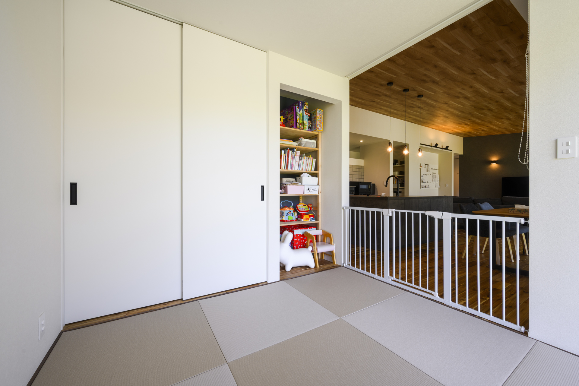 将来的に仕切れる子ども部屋。お子様が小さいうちは1部屋として使うことで大きな遊具も置けて遊べます。