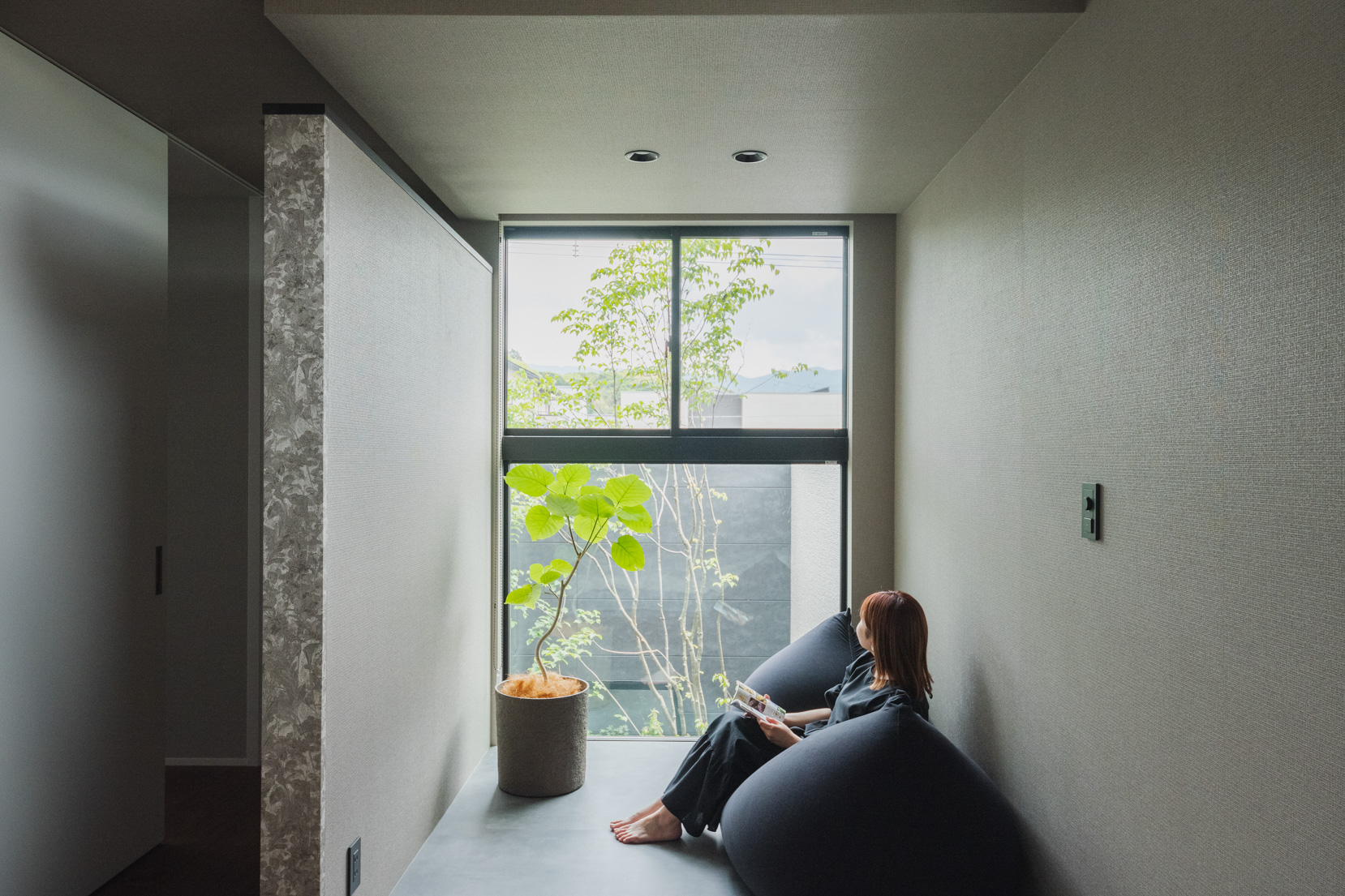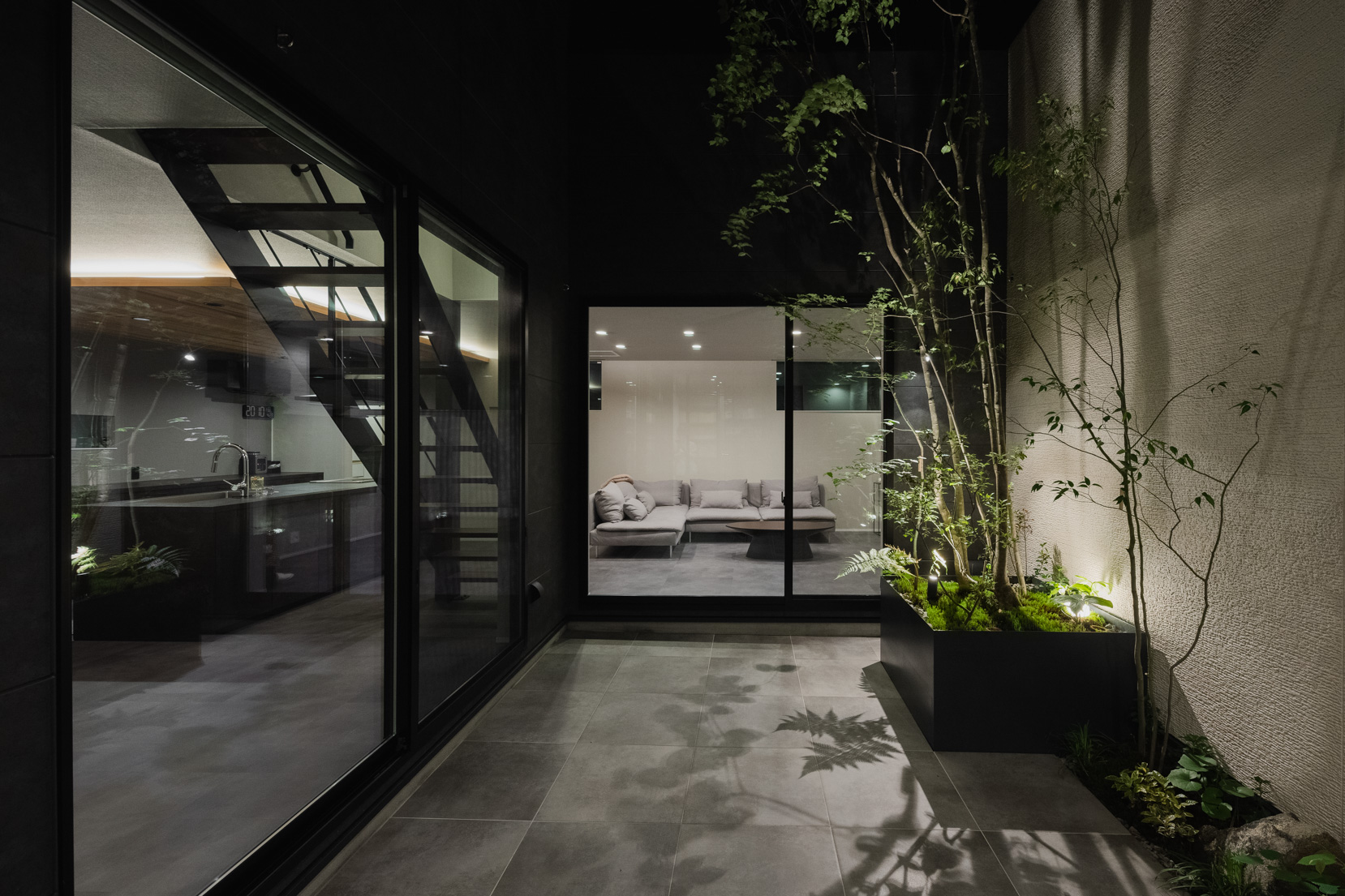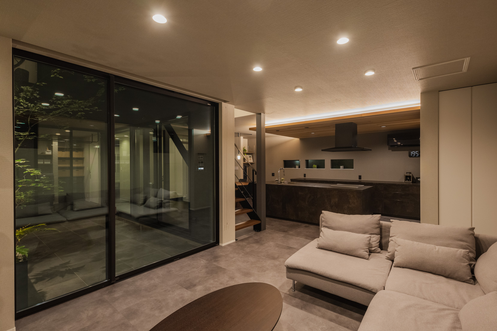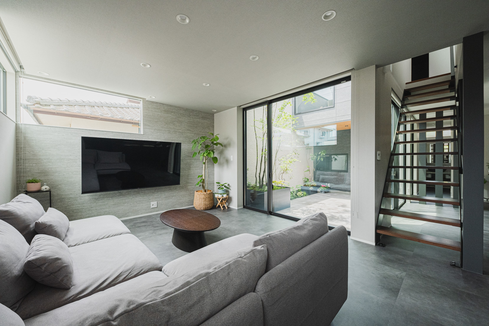 体感約40帖のLDK。中庭とつながる大きな窓から光をたっぷり取り入れます。