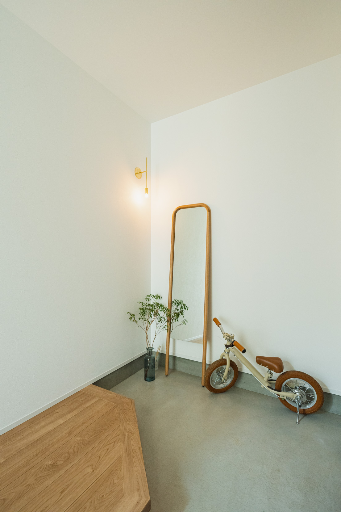 モルタルの玄関土間は、アクリル塗装でお掃除を楽にする工夫も施しました。