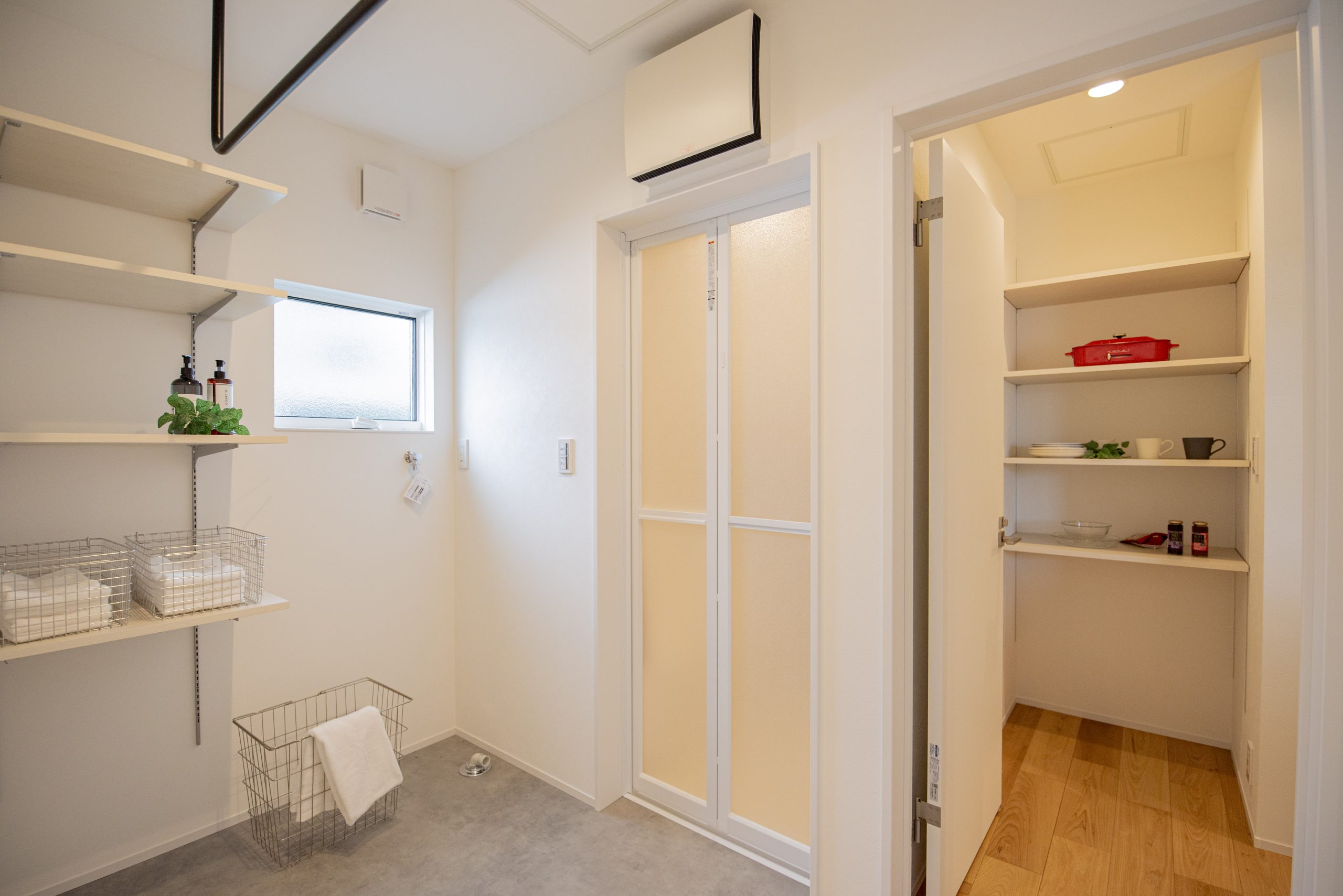 無駄のない動線上に配置された大容量のパントリーは、日々の家事をスムーズにし、暮らしにゆとりを生んでくれる。