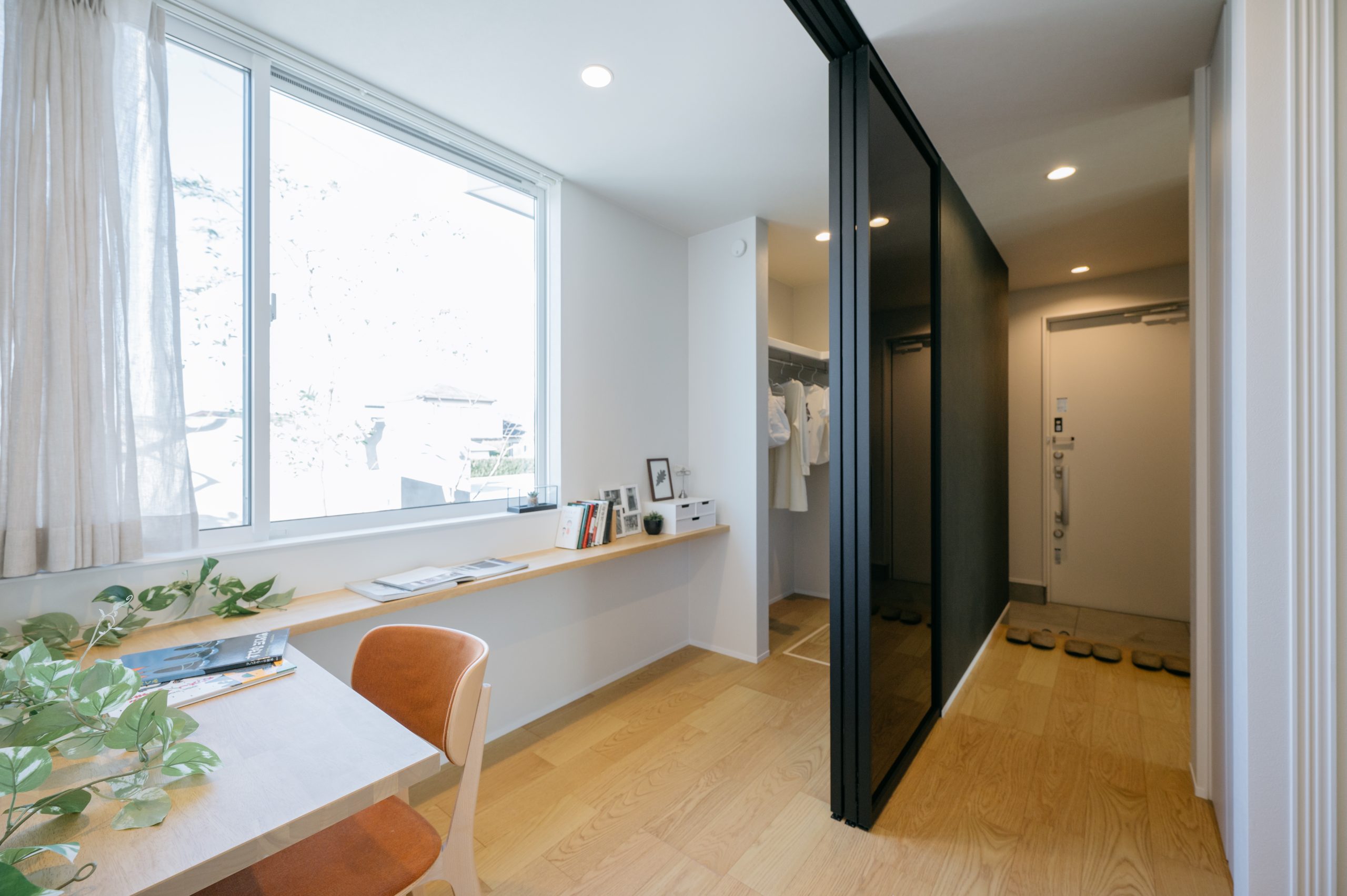 家族みんなで使える大容量のウォークインクローゼットと、静かに自分だけの時間を過ごせるおこもり書斎スペース。