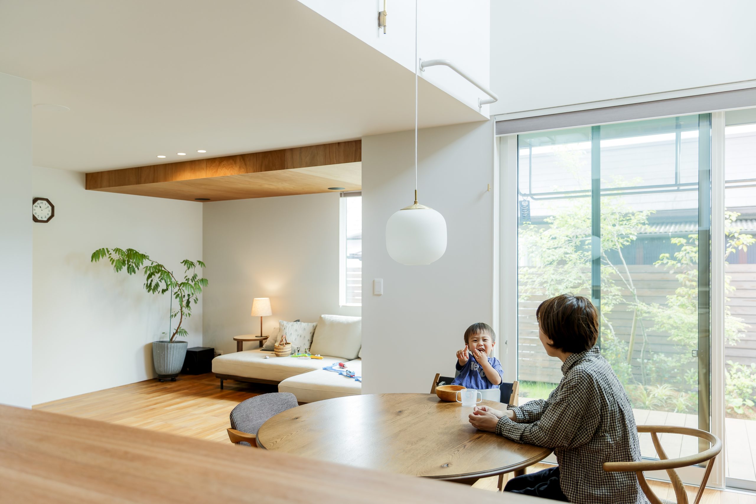 リビングはダイニングと少し離すことで、独立感のあるくつろぎの空間に。